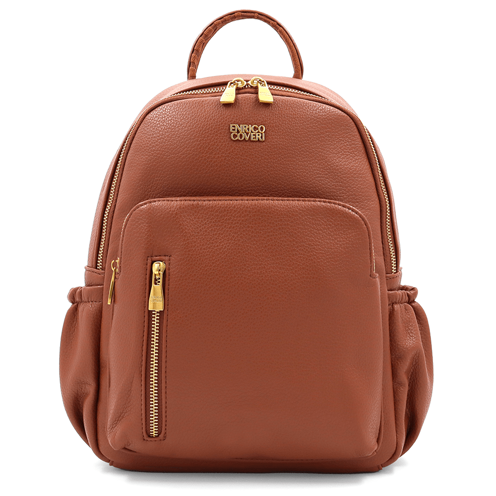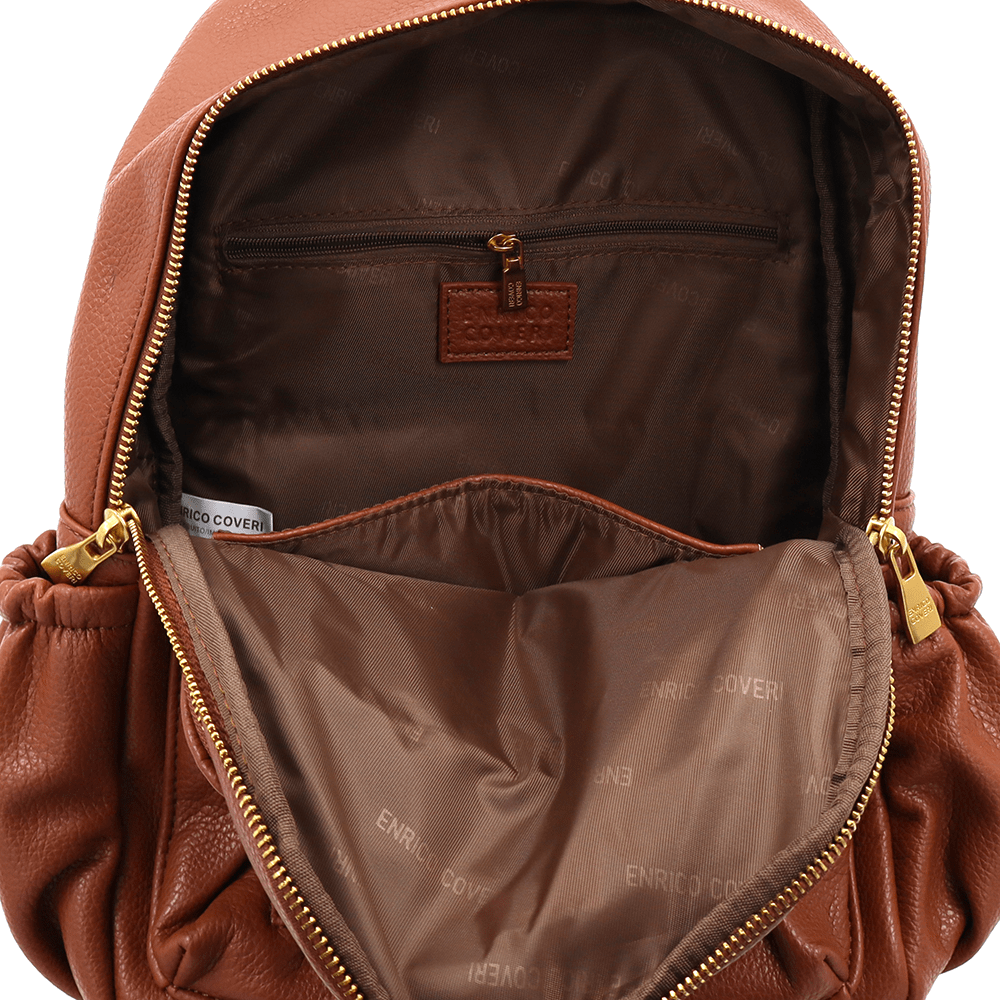 Дамска кожена раница Enrico Coveri – елегантна кафява раница от висококачествена еко кожа