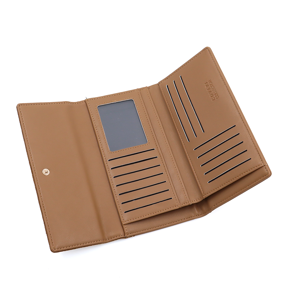 Това дамско портмоне от еко кожа е идеалният избор за жени, които търсят комбинация от елегантност, удобство и добра организация. Мекият велурен завършек придава луксозен вид, а множеството отделения осигуряват лесен достъп до всичко необходимо.