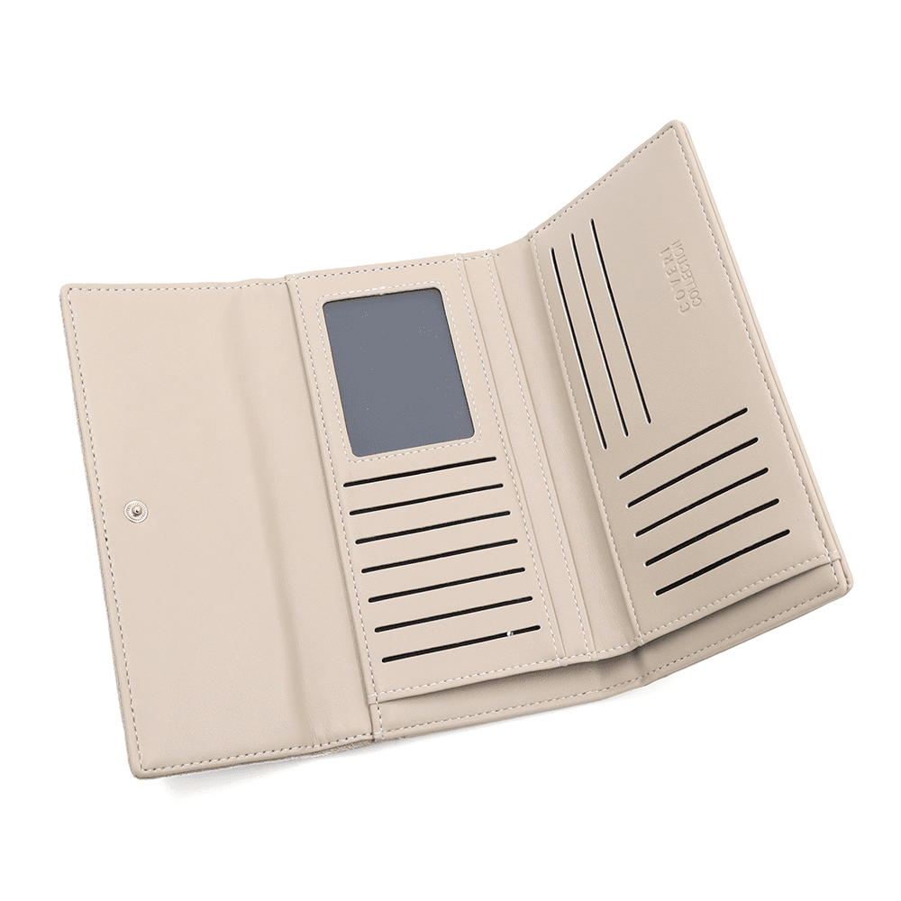Това дамско портмоне от еко кожа е идеалният избор за жени, които търсят комбинация от елегантност, удобство и добра организация. Мекият велурен завършек придава луксозен вид, а множеството отделения осигуряват лесен достъп до всичко необходимо.