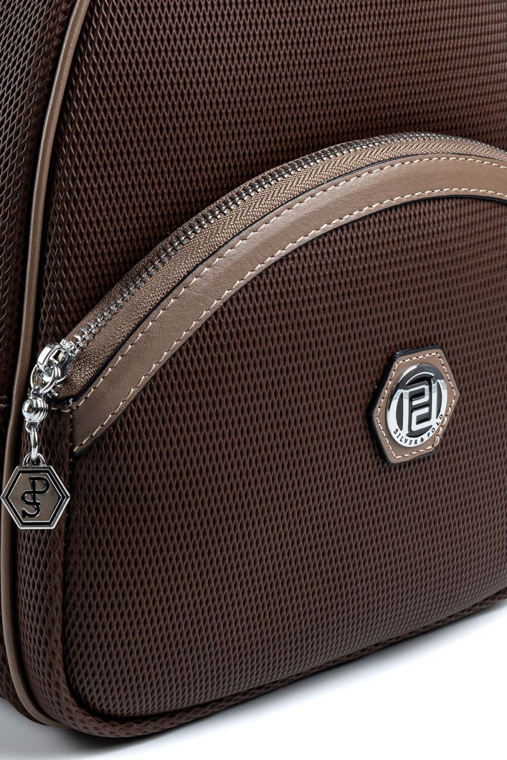 Текстилните дръжки на чанти и раници са брандирани. За да постигнат най-високо качество на моделите си, Silver & Polo използват фолирана еко кожа, върху кожата е добавен допълнителен защитен пласт фолио, което предпазва кожата от нараняване и замърсяване. Ако все пак се изцапа се почиства много по-лесно с мокра памучна кърпа. Всички метални елементи също са брандирани с логото Silver Polo, циповете са метални и издръжливи на времето