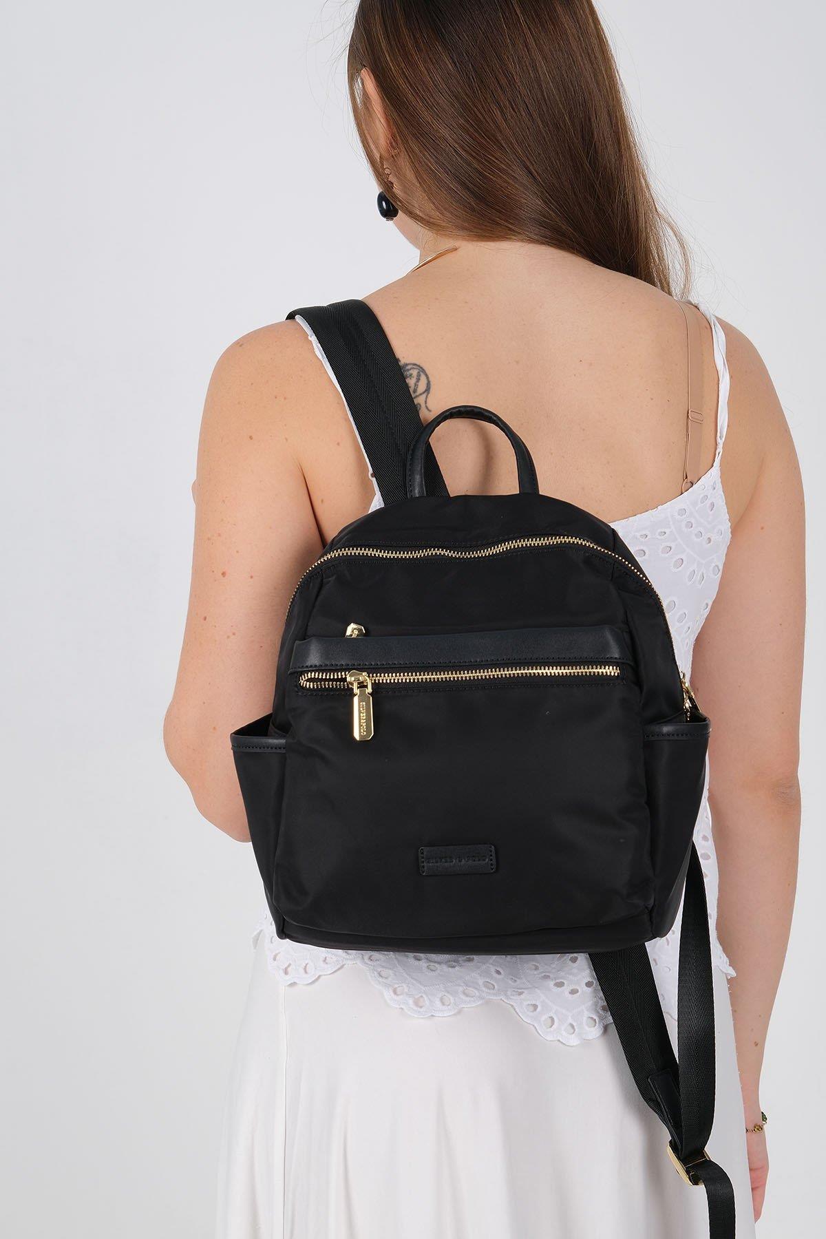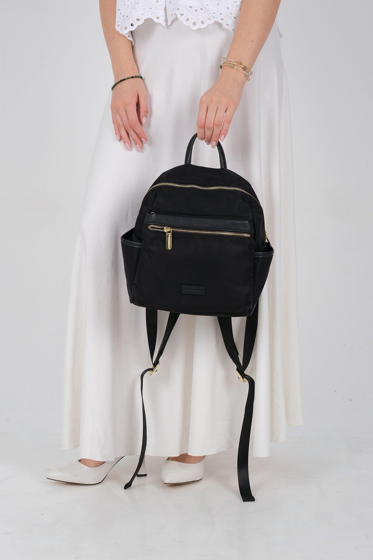 С размери 26 см ширина, 29 см височина и 12 см дълбочина, тази дамска раница от сатен предлага отлична вместимост без излишен обем. Моделът е снабден с регулируеми презрамки, осигуряващи комфорт при носене, а златистите метални аксесоари придават елегантен и модерен акцент.