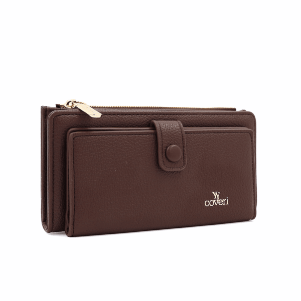 Добавете стил и практичност към ежедневието си с това елегантно дамско портмоне YY Coveri в класически тъмно кафяв цвят. Изработено от висококачествена еко кожа, портмонето съчетава модерен дизайн и издръжливост.