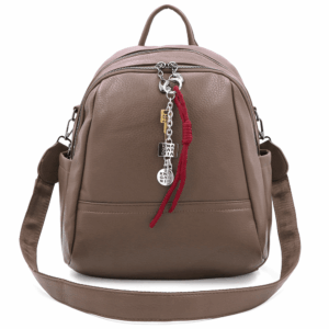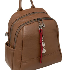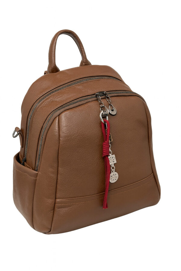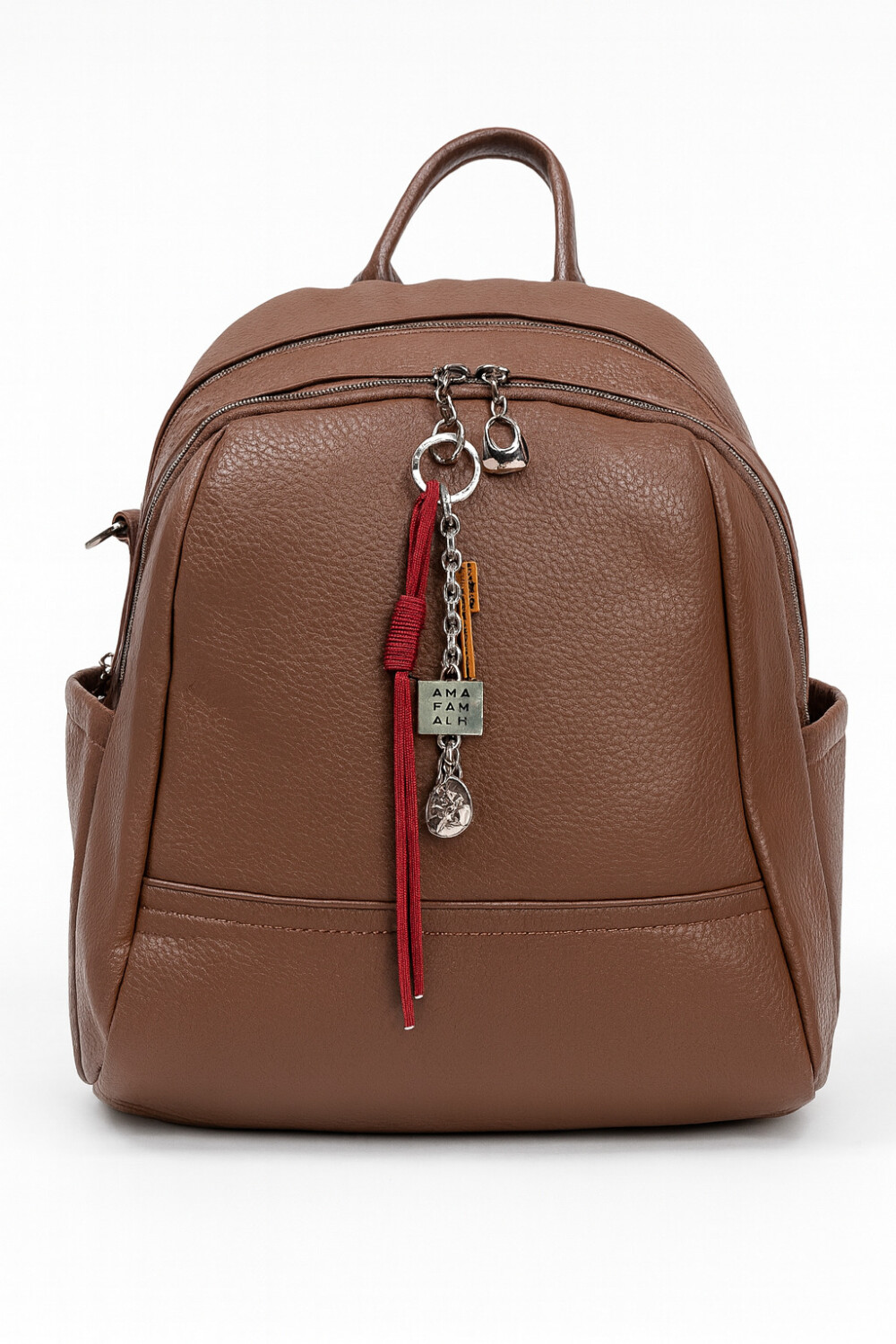 Тъмно кафява дамска раница от еко кожа Maria C. – стилна и практична с декоративен ключодържател
