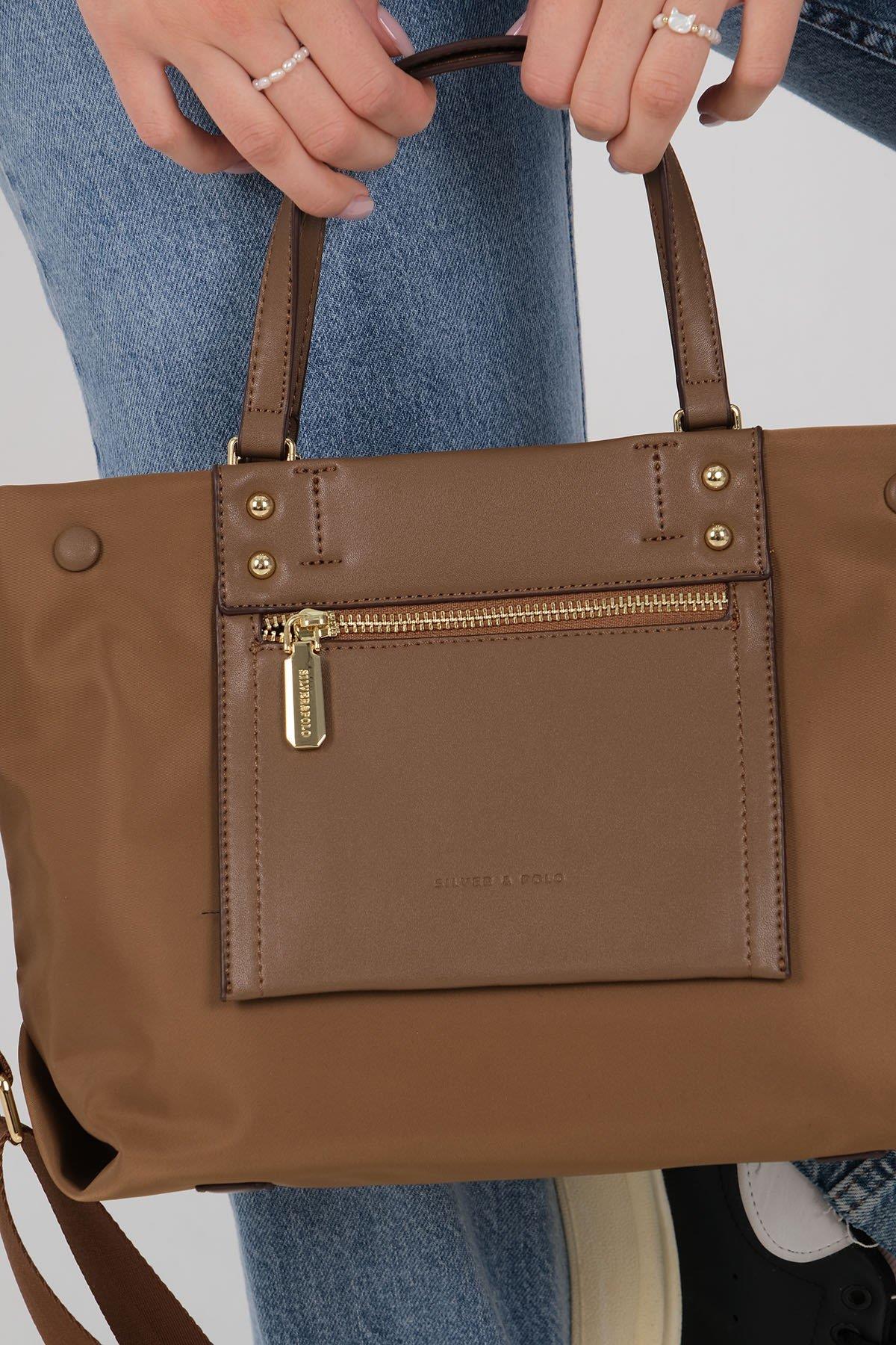 С удобното си вътрешно разпределение от три отделения, включително средно отделение с цип, чантата позволява лесна организация на съдържанието. Разполага с вътрешен джоб с цип и вътрешен джоб без цип, подходящи за телефон, ключове и аксесоари. Допълнителните външни преден и заден джоб с цип осигуряват бърз достъп до най-необходимите вещи.