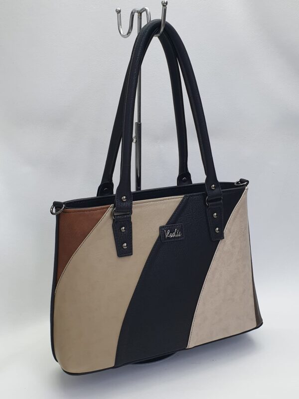 Добавете стил и изисканост към ежедневието си с тази елегантна дамска чанта Vedis. Изработена от висококачествена еко кожа, тя впечатлява с модерна визия и практичен дизайн. Комбинацията от бежово, черно и кафяво придава универсален и луксозен вид, подходящ за всякакви поводи – от работния ден до вечерна среща.