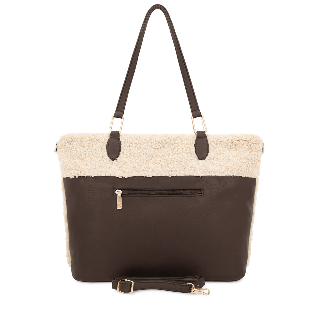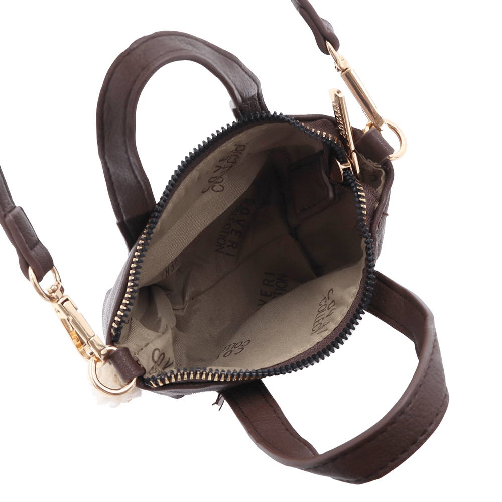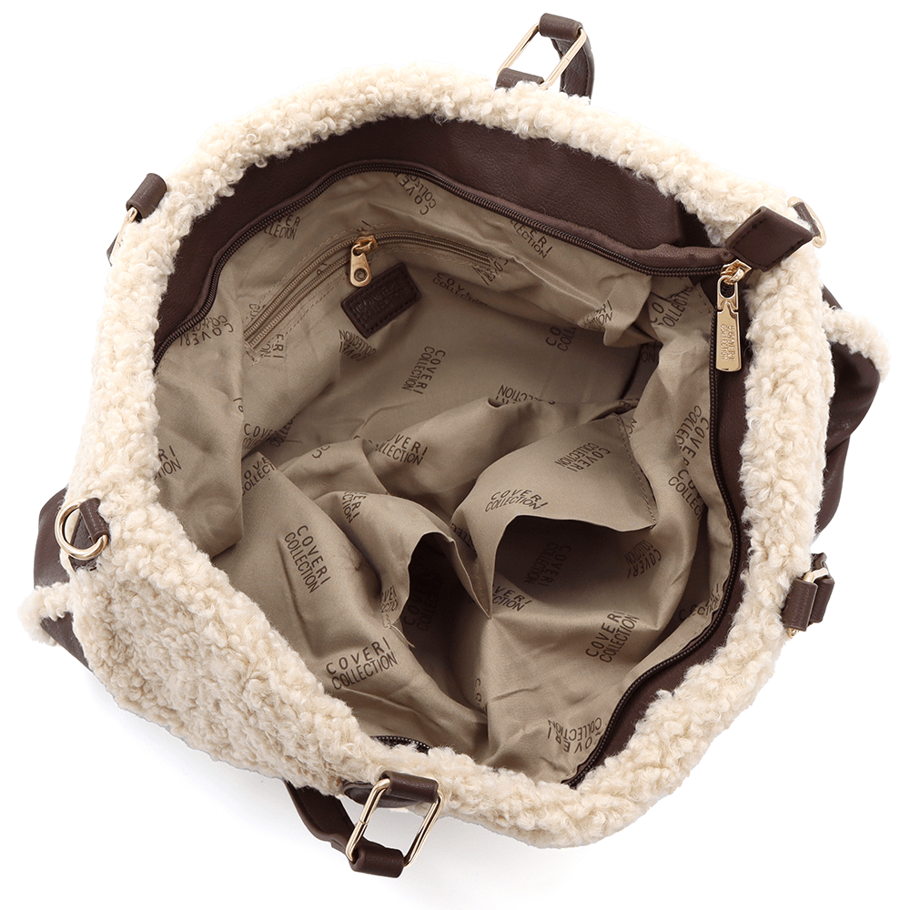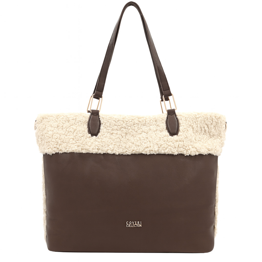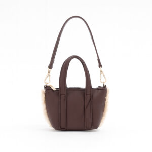 Coveri Collection комплект – тъмно кафява дамска чанта с еко пух и подарък мини чанта