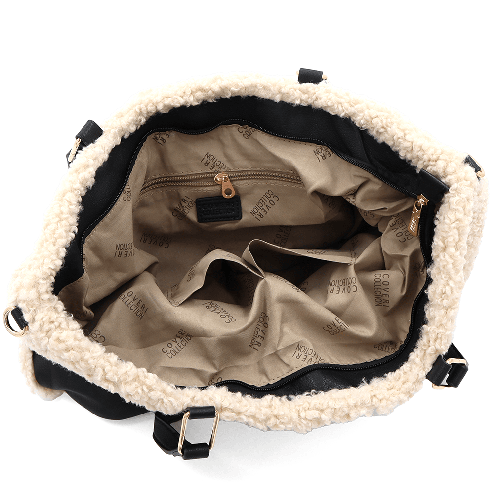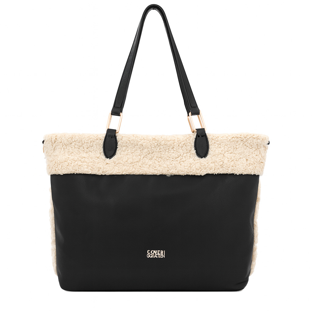 Coveri Collection комплект – черна дамска чанта с еко пух и подарък мини чанта